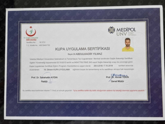 İl dışından tavsiye üzeri Van İlinde diş hekimi Abdulkadir YlLMAZ bey'e implant yapılmak üzere geldik bize göstermiş olduğu ilgi alakadan ve iş yerindeki hijyen kurallarına azami dikkat etmeleri bizleri çok memnun etmiş olup , bundan sonraki iş hayatında başarılar dileriz..