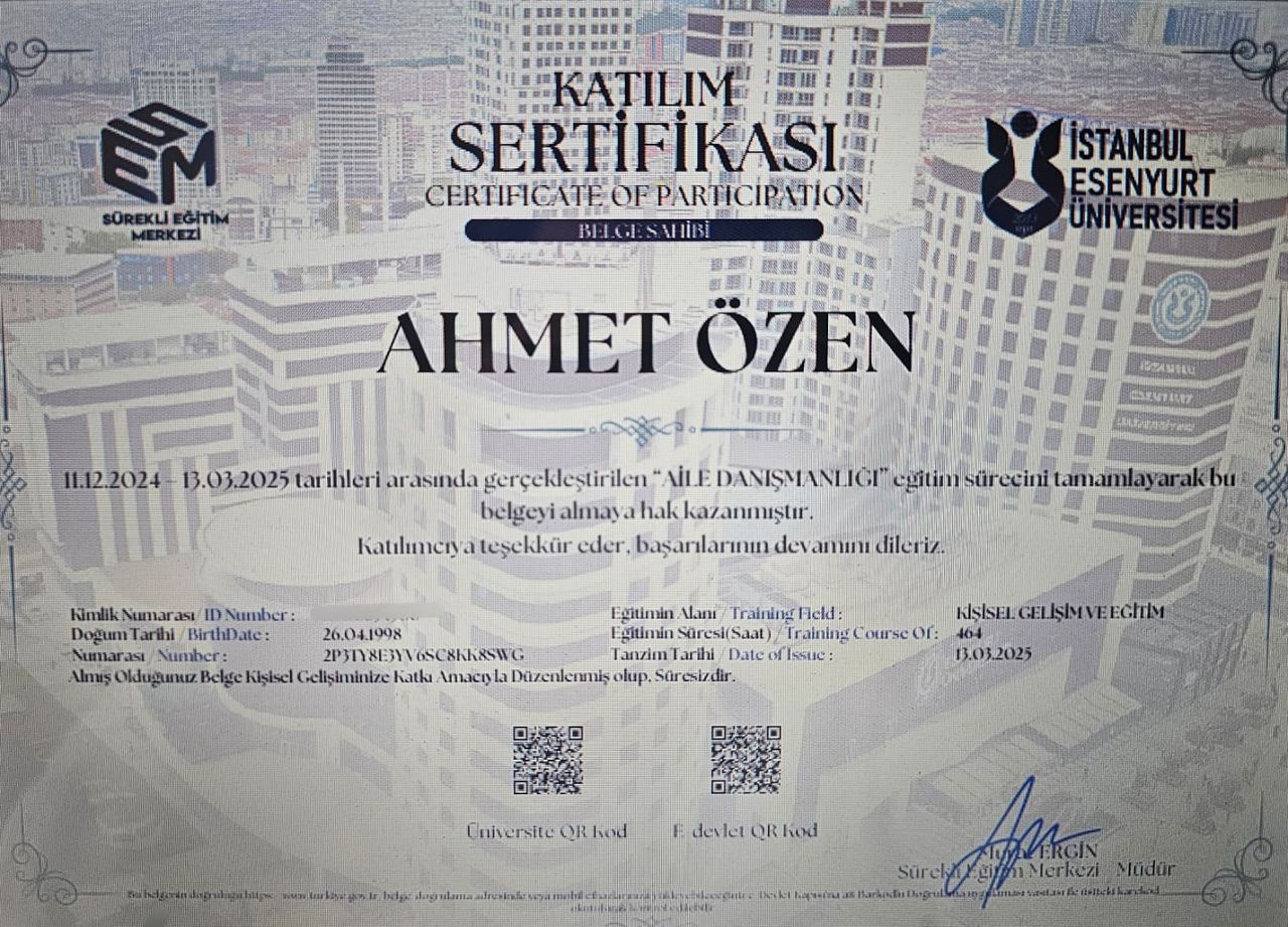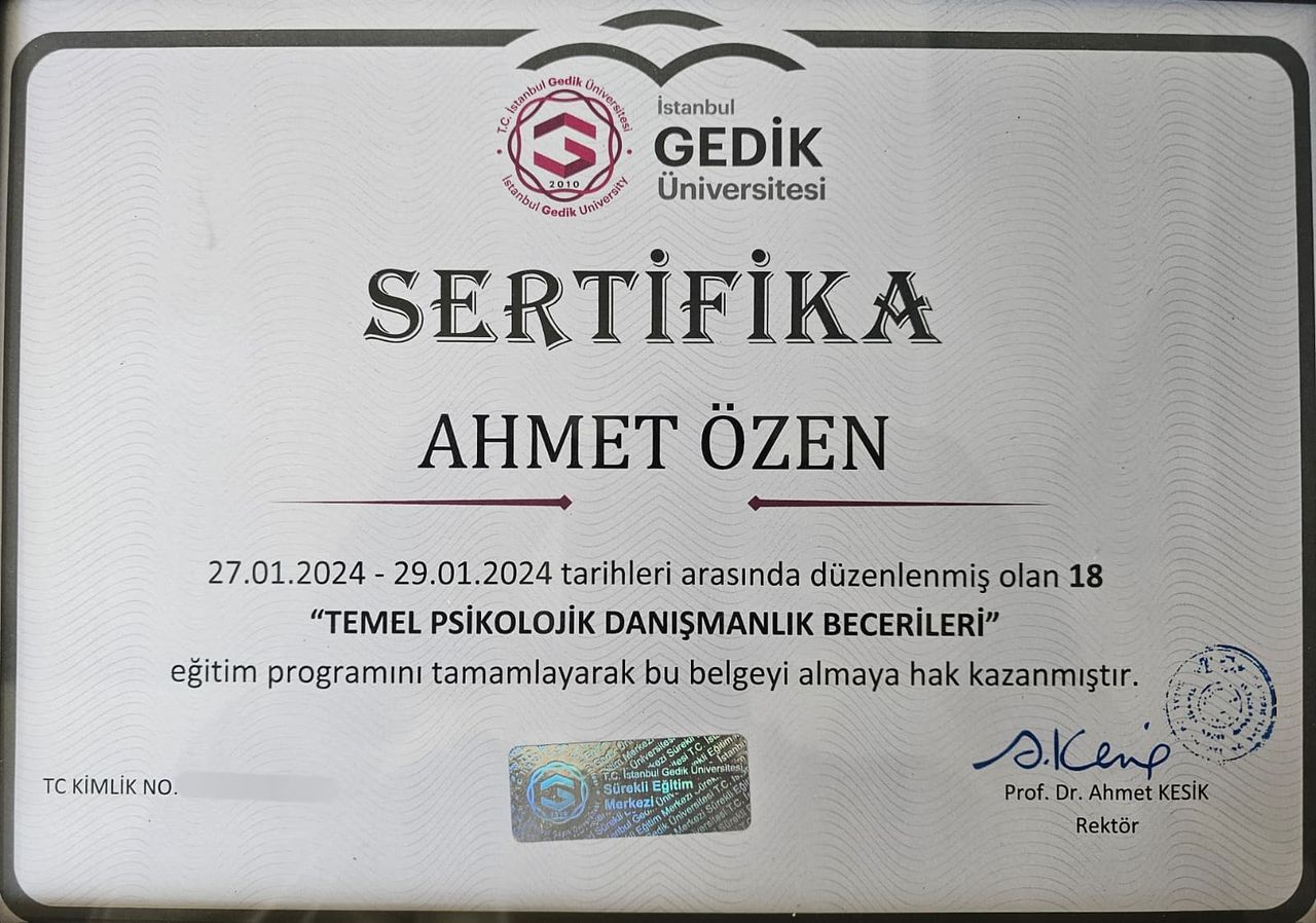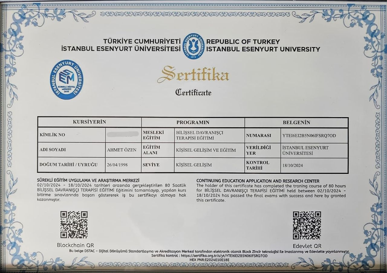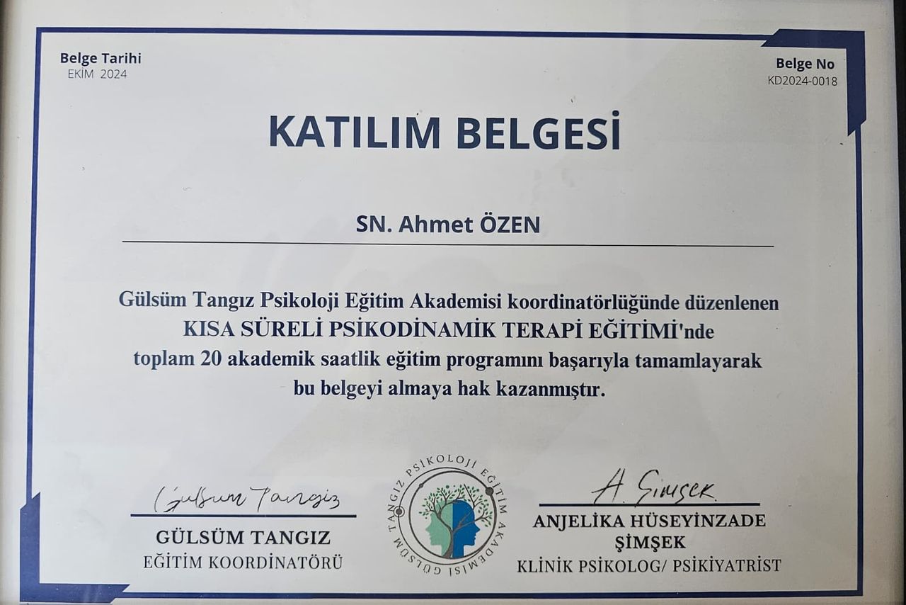 Mesleki gelişimine önem veren Psikolog Ahmet Özen, akademik kariyerine Mardin Artuklu Üniversitesi Psikoloji Yüksek Lisans Programı’nda devam etmektedir. Yüksek lisans çalışmalarında özellikle depresyon, anksiyete, kaygı bozuklukları ve stres yönetimi konularına odaklanarak bilimsel perspektifini ve klinik yetkinliğini güçlendirmektedir.