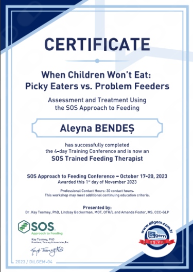 aleyna hanım ile tavsiye üzerine tanışma fırsatı bulduk ilgisine ve güler yüzüne hayran kaldık gerçekten çok sıcakkanlı biri kızım 4.5 yaşında ve asla katı gıda yemiyordu sadece kahvaltı akşam yemeği niyetine hep mama yediriyordum çiğneme asla yoktu aleyna hanımla tanışana kadar aleyna hanımın uyguladığı teknikler mesajlar ile kızım da gözle görülür bi değişiklik yaşadık çiğnemeleri başladı kahvaltı etmeye başladı domates peynir zeytin gibi besinleri yemeye başladı taze fasulyenin adını duyunca ağlayan kızım taze fasulye yiyor artık iyi ki aleyna hanım ile yollarımız kesişmiş