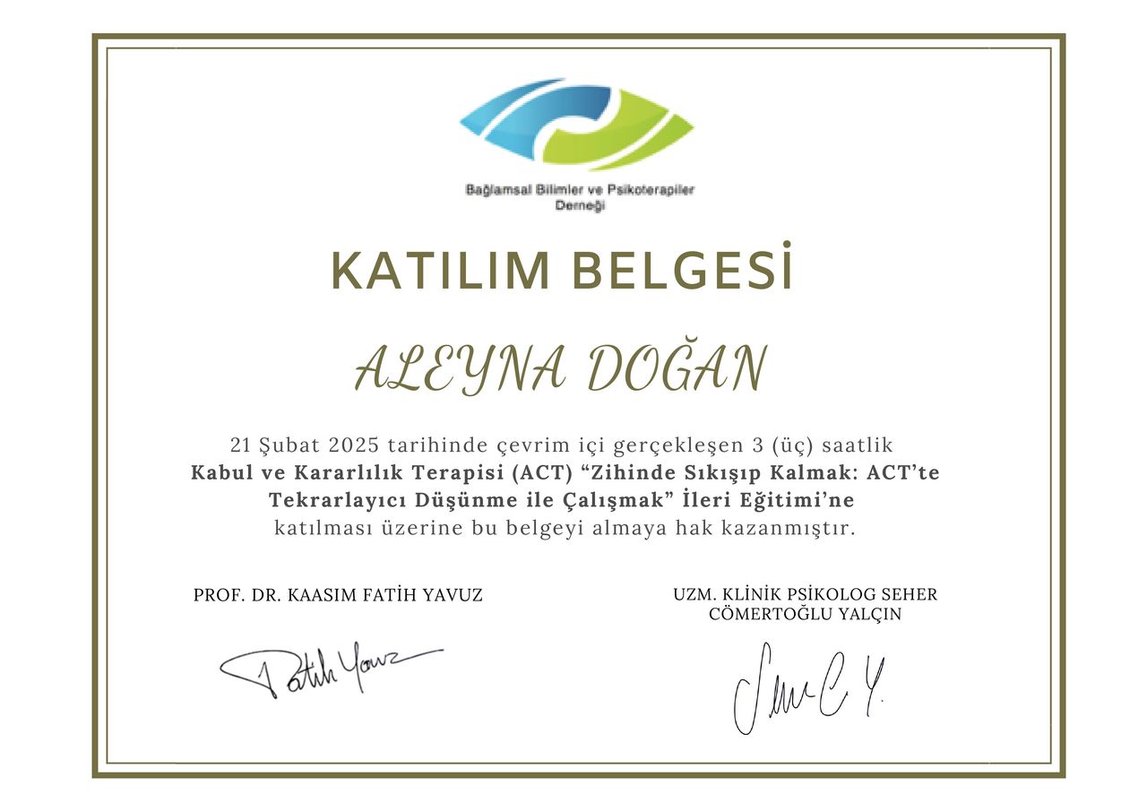 Merhaba, ben Klinik Psikolog Aleyna Doğan.