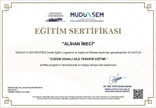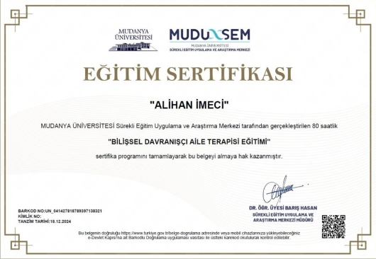 Merhaba, ben Uzman Psikolog Alihan İmeci. Dokuz Eylül Üniversitesi Psikoloji Bölümünü onur derecesiyle tamamladıktan sonra Ege Üniversitesi Aile Danışmanlığı Yüksek Lisans programını yüksek onur derecesiyle tamamladım. Lisans sürecimde pek çok dernekte ve çeşitli sivil toplum kuruluşlarında sorumluluk aldım ve gönüllü olarak projelerde rol oynadım. Üniversitemin Psikoloji Topluluğunda bir yıl boyunca yönetim kurulunda yer aldım. Yine öğrencilik sürecimde özel bir psikolojik danışmanlık merkezinde stajyer psikolog olarak görev aldım, mezuniyetim sonrasında da başka bir psikoloji merkezinde bir süre çalıştım ve bu sayede klinik anlamda temel tecrübemi edindim. Şu anda, yetişkin ve ergen bireylerle yüz yüze ve çevrimiçi görüşüyorum. Üniversite ve yüksek lisans sürecindeki öğrenimlerime ek olarak Davranış Araştırmaları ve Terapileri Merkezi tarafından verilen “Bilişsel Davranışçı T. Eğitimi” ile birlikte pek çok klinik alt alanda uygulamaya yönelik becerilerimi pekiştirdim. Psikologların benimsedikleri çeşitli