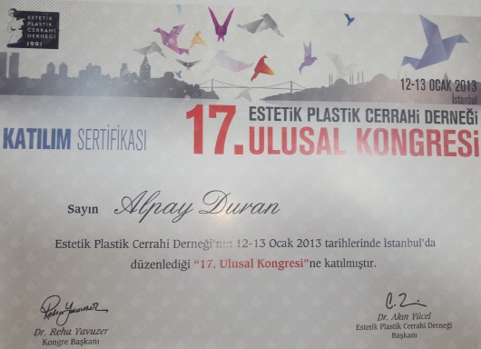 Eğitimi ve uzmanlığı süresince meme ve burun estetiği, minimal invaziv estetik girişimler (botox, dolgu , PRP, mezoterapi, ameliyatsız yüz germe uygulamaları ), kongenital el anomalileri, el cerrahisi ve maksillofasiyal travmalar ile yakından ilgilendi. Çeşitli plastik cerrahi teknikleri ile ilgili yurtiçi ve yurt dışı dergilerde yayınlamış bilimsel çalışmaları oldu. Op. Dr. Alpay Duran İstanbul ilimizde bulunan kendi kliniğinde hastalarına hizmet vermektedir.