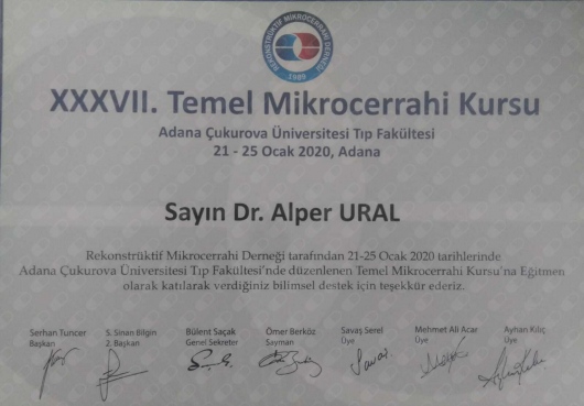 6. XXXVII. Temel Mikrocerrahi Kursu, KURS EGITMENLIGI, ÇUKUROVA ÜNIVERSITESI TIP FAKÜLTESI / ADANA, Kurs, 2020 (Ulusal)
