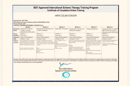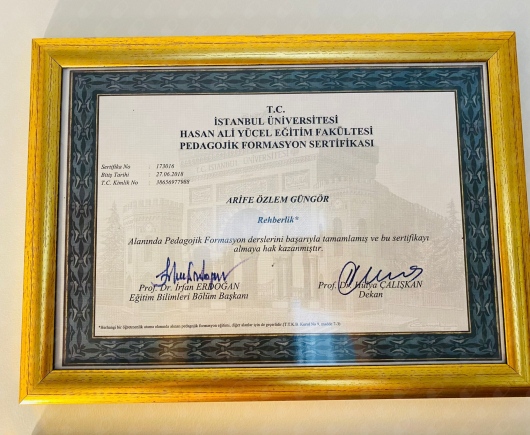 Yüksek lisans eğitim sürecinde Bilişsel Davranışçı Terapi, Psikanaliz , EMDR , Gestalt Terapi , Bireysel Psikoterapi Süpervizyon Eğitimi, Kısa Süreli Çözüm Odaklı Terapi, Cinsel Terapi, Evlilik ve Çift Terapisi, MMPI ( Minnesota Çok Yönlü Kişilk Envanteri) eğitimlerini almıştır.