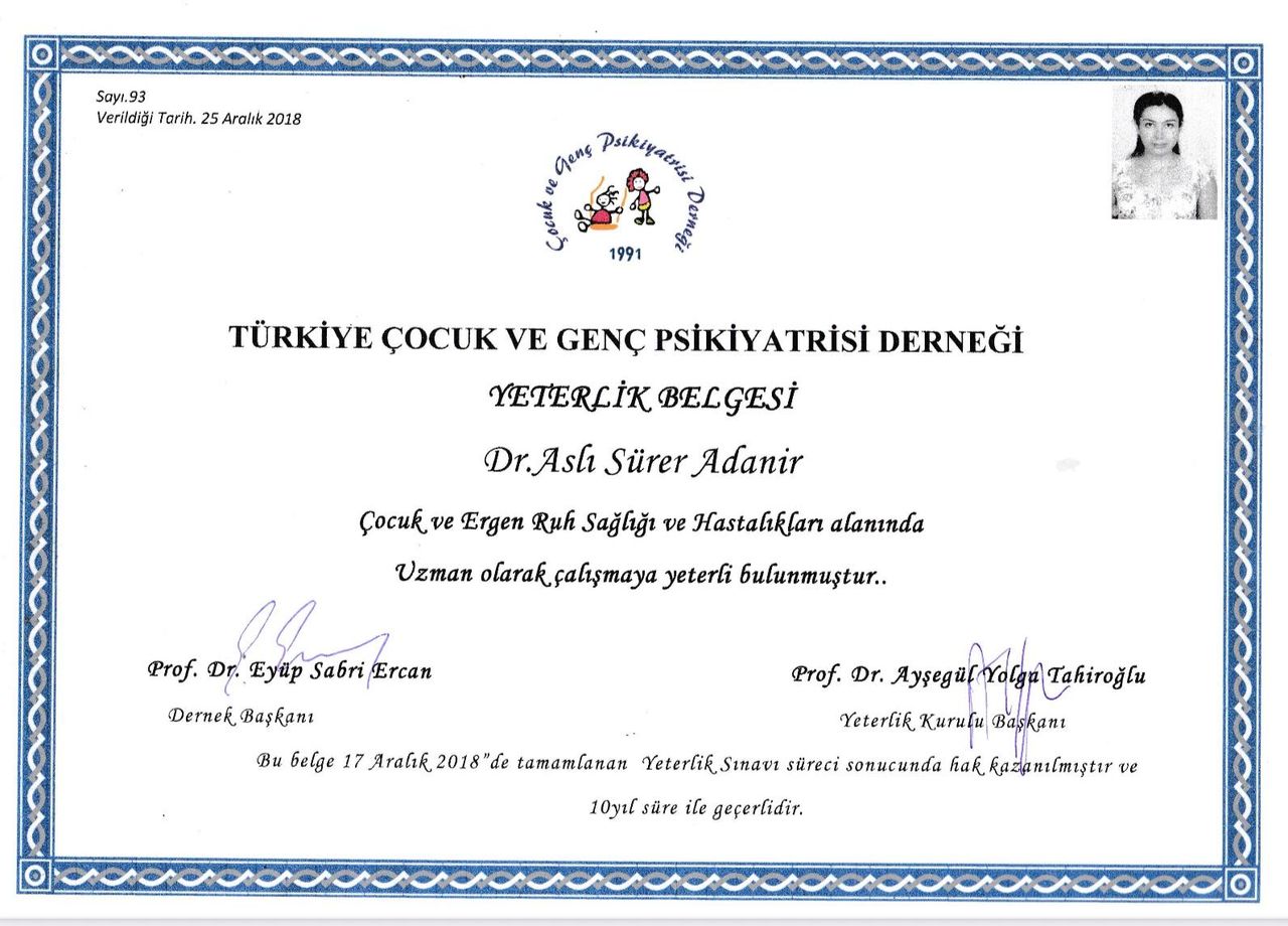 • Doç. Dr. Aslı Sürer Adanır • Çocuk Psikiyatrisi Randevusu •