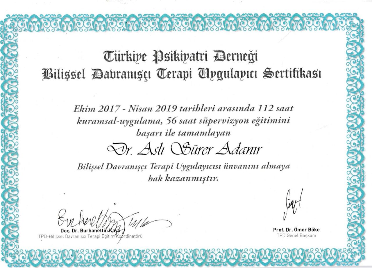 Bilişsel davranışçı terapi uygulayıcı eğitimi