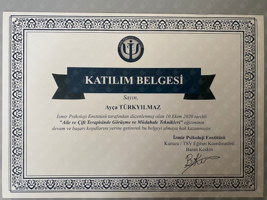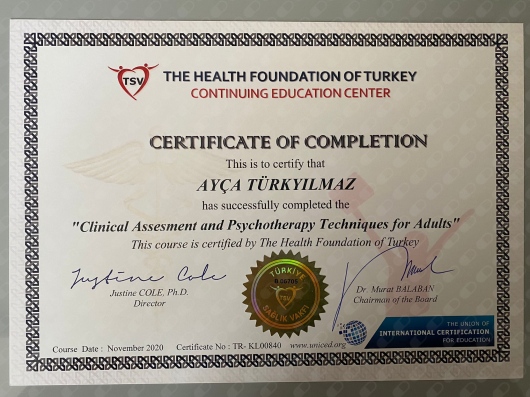 Bilişsel davranışçı terapi, şema terapi ve dinamik psikoterapi alanında uzmanlığım süresince eğitimler aldım. Özel Medifema Hastanesinde Uzman Klinik Psikolog olarak görev aldım. Aile ve Çift Terapisi, Yas Danışmanlığı, Psikolojik İlkyardım, Çocuk Değerlendirme Testleri, Yetişkin Klinik Değerlendirme ve Psikoterapi Uygulamaları gibi birçok alanda eğitimler alarak uzmanlığımı pekiştirdim.