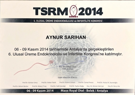 6. Ulusal Üreme Endokrinolojisi ve İnfertilite Kongresi, Antalya (2014)