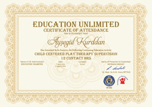 Ayşegül Kurddan özellikle çocukların kendilerini güvenle ifade edebilmeleri ve iyileşme süreçlerini desteklemeye odaklanmaktadır. Aynı zamanda ebeveynlere rehberlik ederek çocuklarıyla daha güçlü ve sağlıklı ilişkiler kurmalarını sağlamayı amaçlamaktadır.