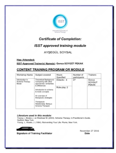 Uzm. Kl. Psk. Ayşegül Soysal Taşçı (Bağdat Psikiyatri ve Psikoterapi Merkezi )