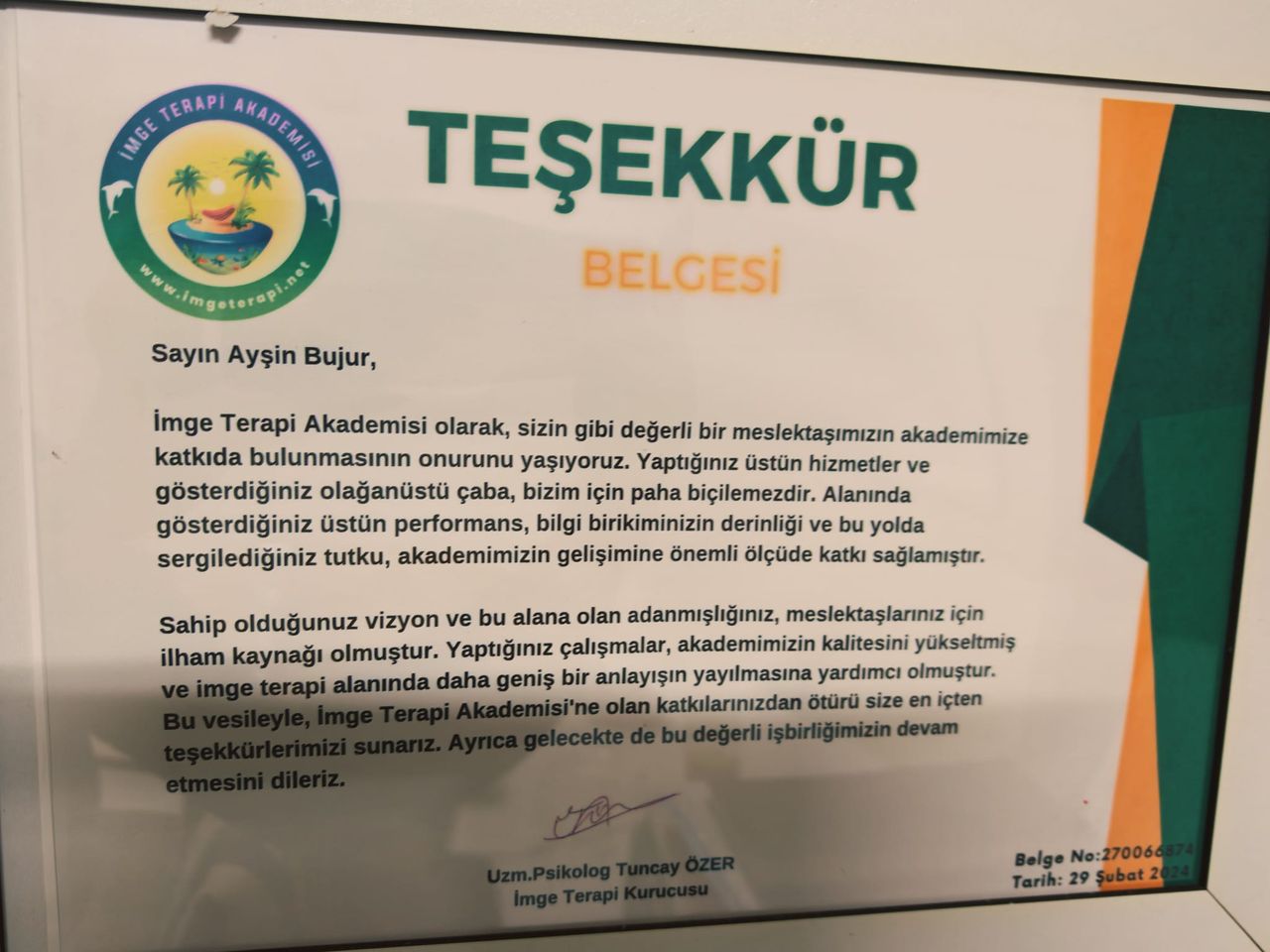 “Bu anlamlı geri bildiriminiz için teşekkür ederim. Terapi, kişinin kendi özünü yeniden hatırlama ve içsel dengesini kurma sürecidir. Bu süreçte gösterdiğiniz cesaret ve güven, dönüşümün en güçlü parçasıdır. Yolculuğunuza eşlik etmek benim için büyük bir değer.”