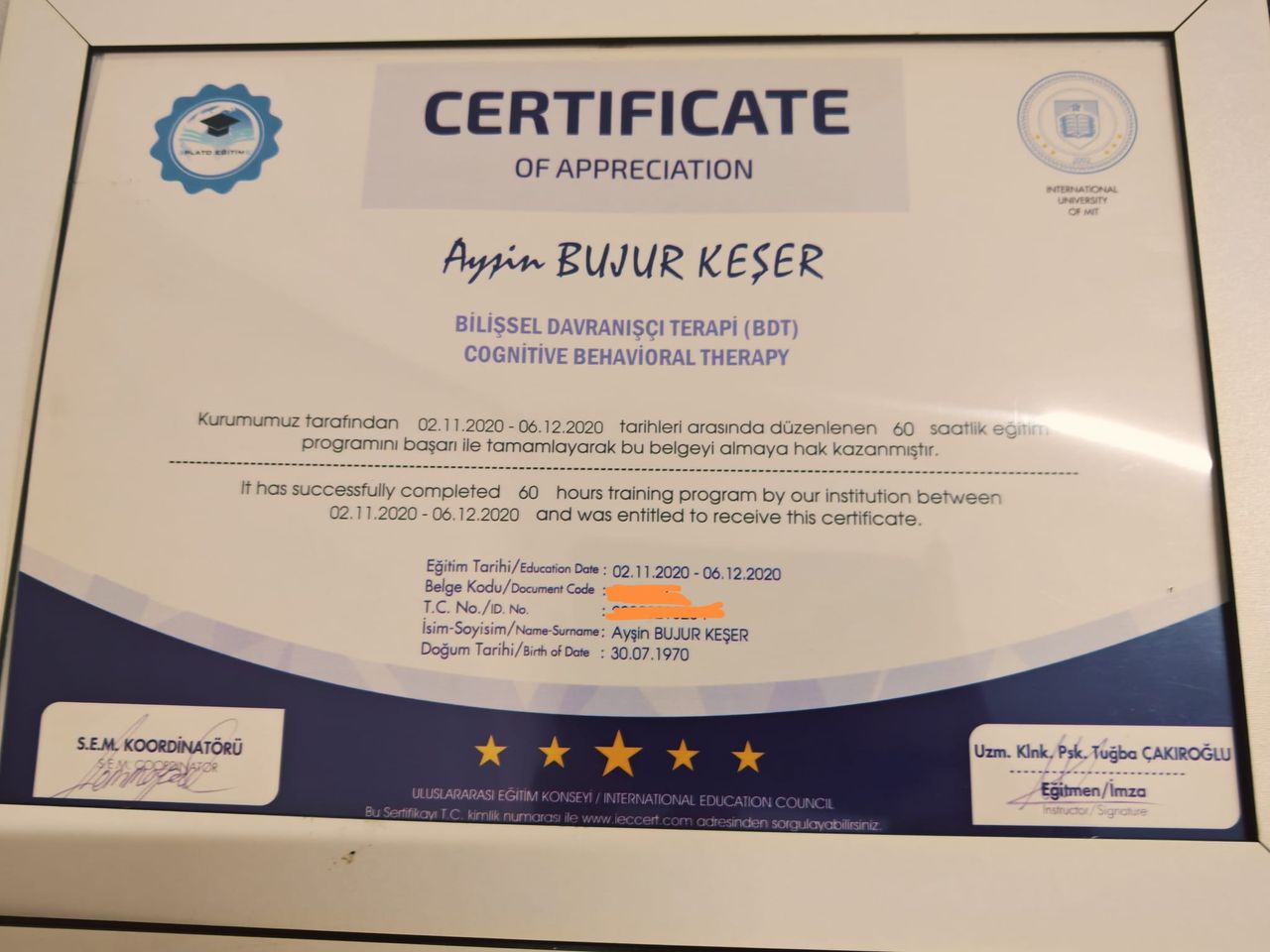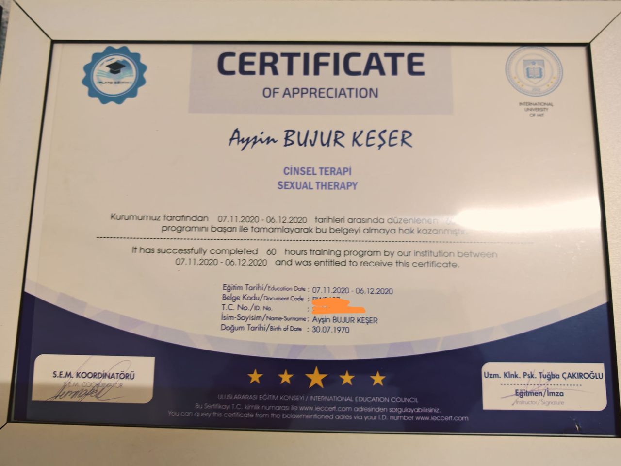Amacım, danışanlarımın kendilerini daha iyi anlamalarına, içsel güçlerini fark etmelerine ve daha dengeli bir yaşam kurmalarına destek olmaktır.