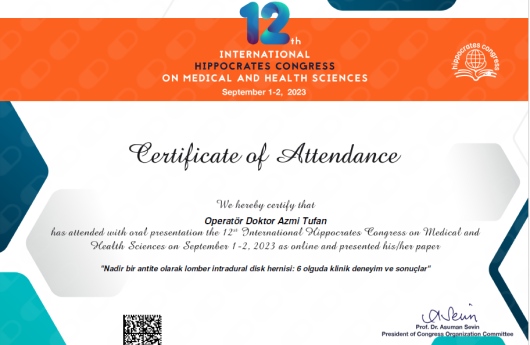 Sinirlere baskı uygulayan patlamış bir bel fıtığım vardı. Ayak parmaklarımda hissizlik yapmıştı. Allah razı olsun Dr. Azmi tufan bey ile karşılaştık ve ameliyat etti beni. Neredeyse 6 ay oldu belim çok iyi ve parmaklarımda ki hissizlikler baya hafifledi normal hayata döndüm çok şükür. Allah razı olsun doktor beyden ve ameliyathanede ki ekibinden çok ilgililerdi.