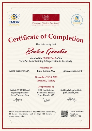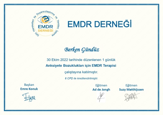 Aynı zamanda uygulanan EMDR teknikleri benim hayatımı olumsuz etkileyen ve gözümün önünden gitmeyen anları o kadar güzel temizledik ki artık hiçbiri beni rahatsız etmiyor.