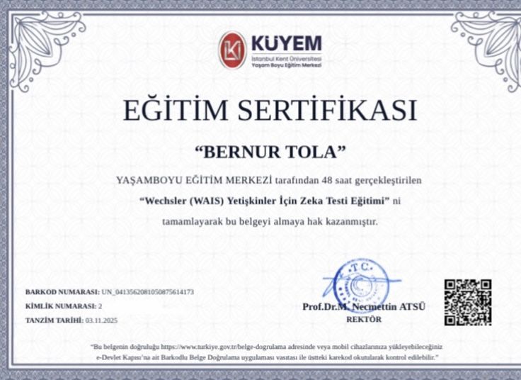 Uzmanımıza referans ile ulaştım. Oğlumun dikkat eksikliği, derslere adapte olamaması, aşırı sinir ve öfke için başvuru yaptım ve çok güzel değişim ve faydasını gördük. Bernur Tola sayesinde memnun kaldık ve çevreme tavsiye ederim.