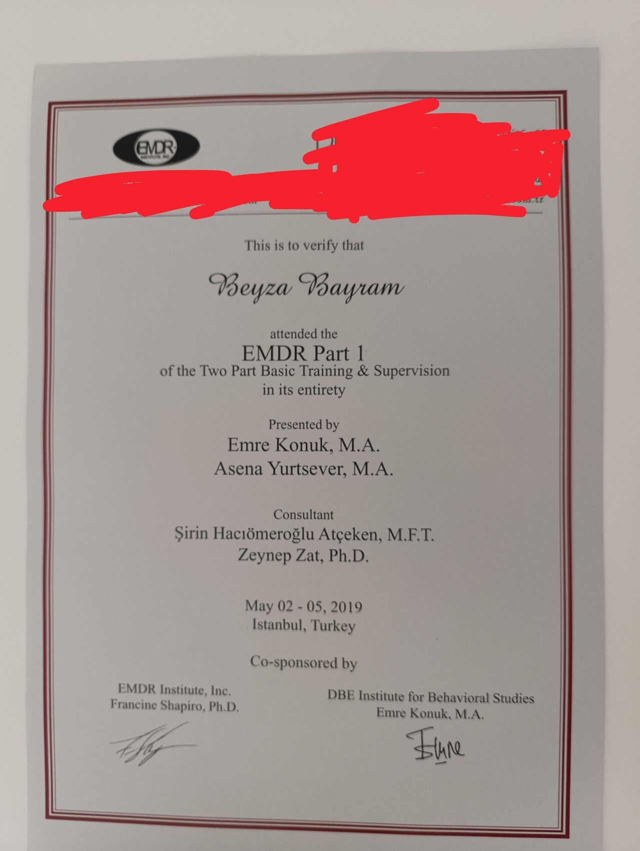 Beyza hocamla kaygı bozukluğu üzerine EMDR seanslarıyla çalıştık. Çok faydasını gördüm emeklerine sağlık.