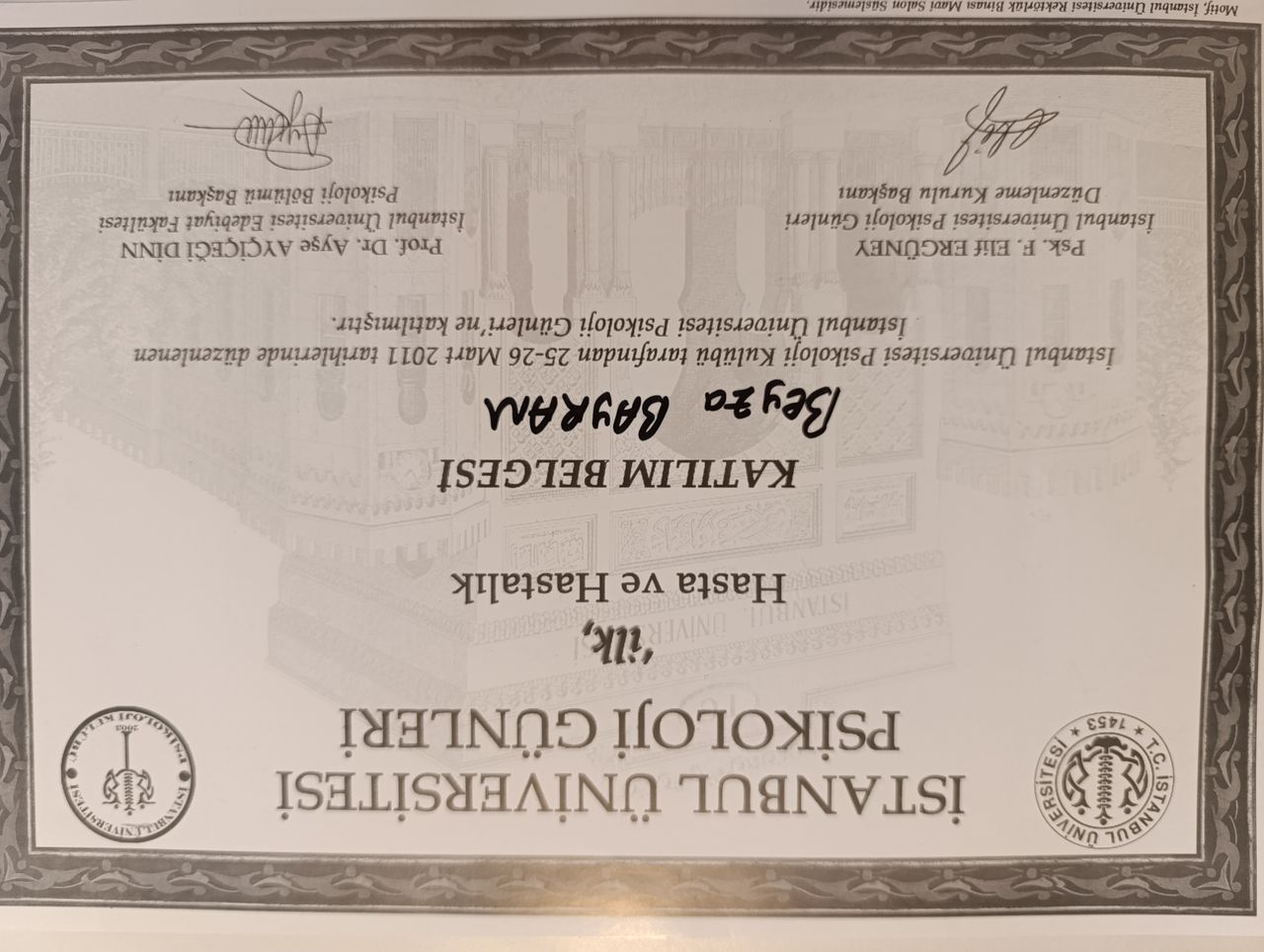 Ben liseye giderken kendisi bizim okulda çalışıyordu. Kafama taktığım birkaç problemim vardı, o yüzden görüşmeye başlamıştım. Görüştüğümüz süre boyunca kendisinden çok memnun kaldım; bana çok yardımcı oldu sorunları çözmemde. Ondan sonra da bir daha irtibatımı koparmadım. Tabii ki çevremde herkese tavsiye ederim. Kendisi son derece iyi bir psikologtur; kaç yıl oldu, hâlâ kendisiyle iletişimi kesmedim.