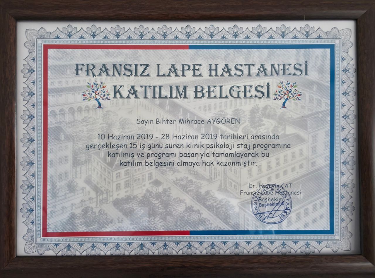Bihter Mihrace Aygören isimli uzmanın ana uzmanlık alanları nelerdir?Bihter Mihrace Aygören, Psikoloji. Size Bihter Mihrace Aygören tarafından sunulan hizmetlerden bazılarını gösteriyoruz: Randevu, Online Terapi, Psikoloji Randevusu, Normal Randevu, Bilişsel Davranışçı Terapi, Psikoterapi, Aile Terapisi, Yetişkin Terapisi, Çift Terapisi, Oyun Terapisi.
