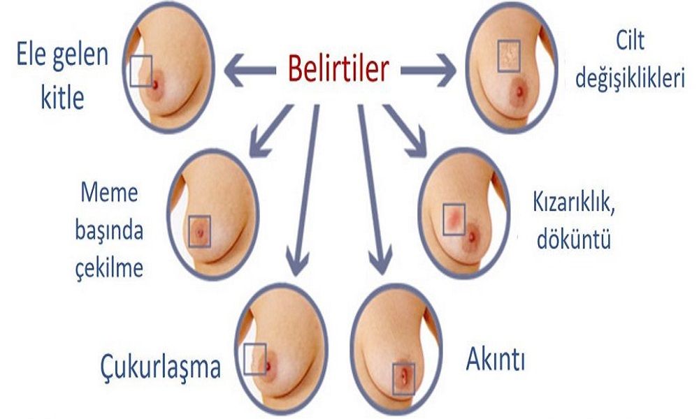 MEME KANSERİ BELIRTILERİ Memede veya koltukaltında ele gelen kitle Meme başından akıntı Meme başında içe çekilme veya şekil...