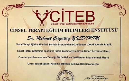 2015 Cinsel Terapi Eğitim Bilimleri Enstitüsü bünyesinde Cinsel Terapi Eğitim Sertifikası almıştır.