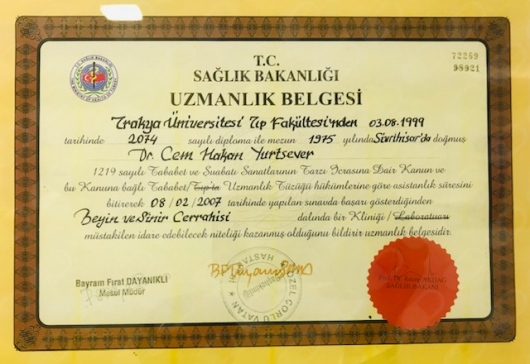 - Uzmanlık eğitimim DOKUZ EYLÜL ÜNİVERSİTESİ BEYİN VE SİNİR CERRAHİSİ BÖLÜMÜ