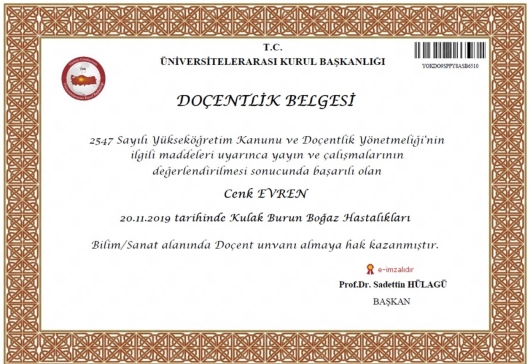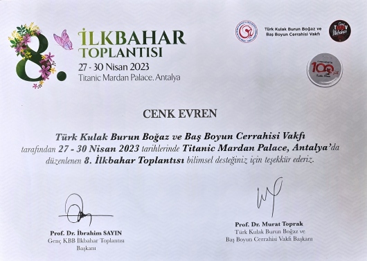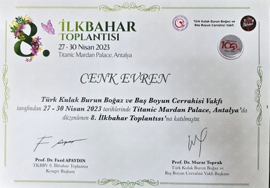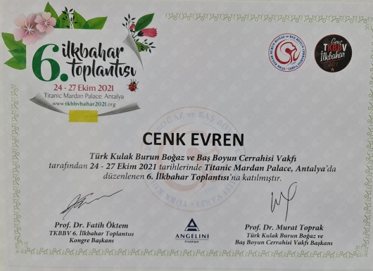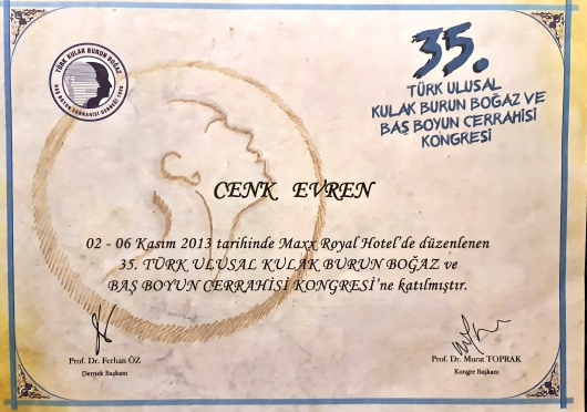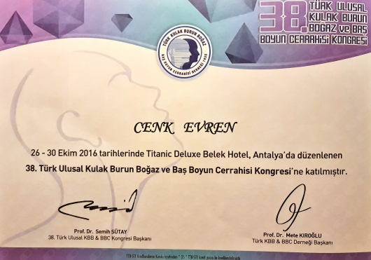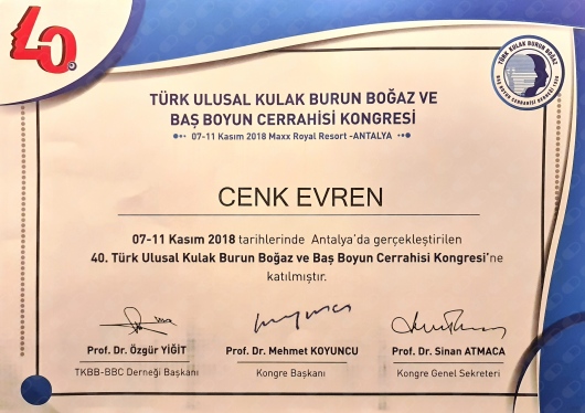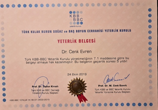 Cenk hocama kulağımda ani ses kaybı yaşayınca gitmiştim.Başka bir doktora da gitti tedavi sonuç vermedi.Cenk hocamın verdiği ilaçlarla %70 ses kaybım % 10 a kadar geriledi ve 10 gün sonra da tamamen duymaya başladım.Bunun üzerine kendisinden çok memnun olduğum için eşimi ikna edip kıkırdak eğriliği ameliyatını kendisine yaptırdık.Allah razı olsun o ameliyattan da eşim selametle çıktı.Şu anda iyileşme sürecinde ve her şey gayet iyi gidiyor.Cenk hocamız çok naif çok kibar bir insan.İyi ki onunla tanıştık.Elleri dert görmesin.Daha çok hastalar onun vesilesiyle şifa bulsunlar inşallah
