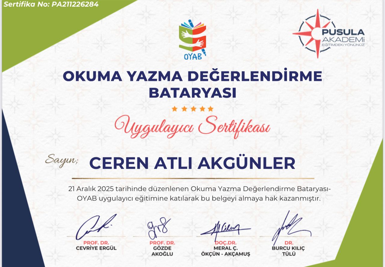 Okuma Yazma Değerlendirme Bataryası (OYAB) Uygulayıcı Eğitimi-Pusula Akademi - 2025