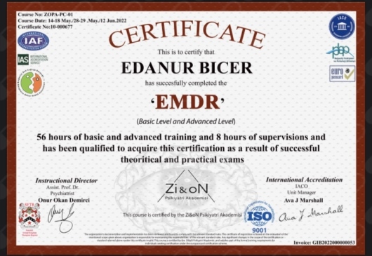 EMDR terapisini internette araştırırken Ümraniye’de Eda Nur Biçer’i buldum. İlk görüşmede bile ne kadar alanına hâkim olduğunu hissettim.