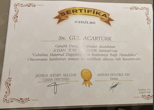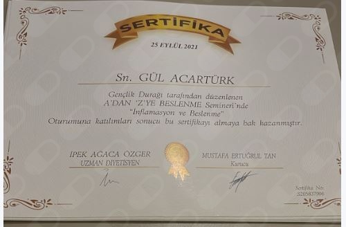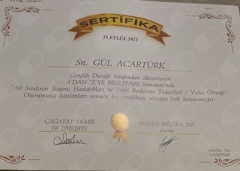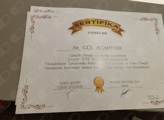 Gül hanımla tavsiye üzerine görüşmemiz oldu güler yüzüyle kendine çeken bi hanımefendi çok memnun kaldım kendisinden tüp mide ameliyatımdan sonra başka bı diyetisyenle görüşmem oldu ama gül hanımın diyetleri benim için daha uygun oldu kendisiyle devam ediyorum herkeze tavsiye ederim
