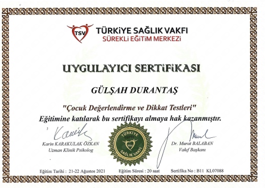 - Çocuk Değerlendirme ve Dikkat Testleri Uygulayıcılığı Eğitimi