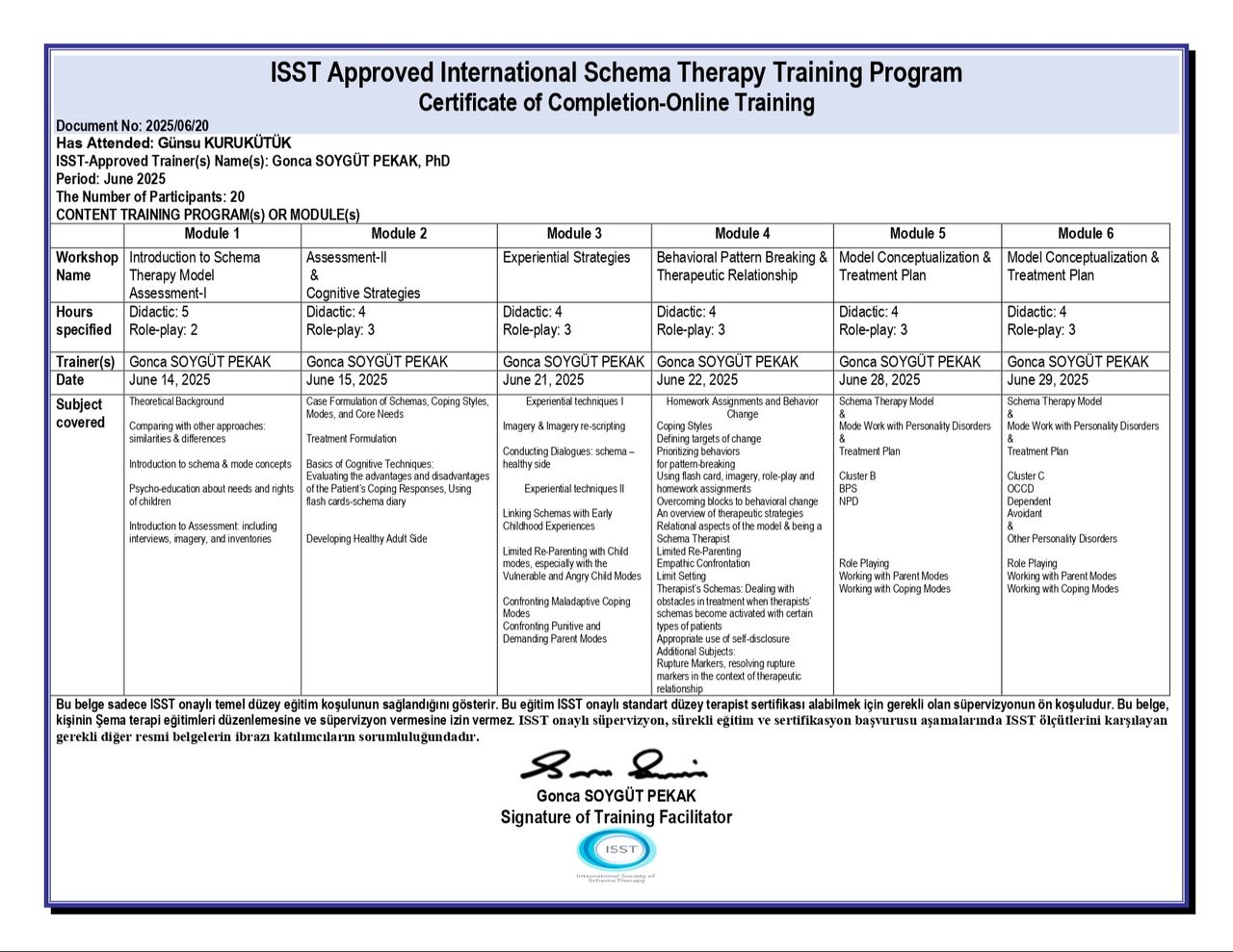Şema terapiye başlarken bu kadar farkındalık kazanacağımı düşünmemiştim. Seanslar sayesinde kendimle ilgili birçok noktayı daha net görmeye başladım.Günsu hanım süreci sakin, açıklayıcı ve güven veren bir şekilde yönetti. Kendini gerçekten tanımak isteyenler için çok kıymetli bir destek.