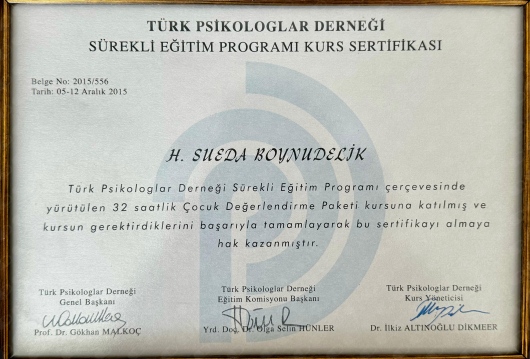 2 buçuk yaşındaki kızımın takıntıları öfke nöbetleri kaygısı için görüşmüştük Sueda hanımla.Tahmin ettiğimizden kısa sürede o kadar yol aldık ki elinde sihirli değnek var gibi.Naifliği, sabrı, ilgisiyle kendinizi özel hissetmemeniz mümkün değil.İyiki yollarımız kesişti.