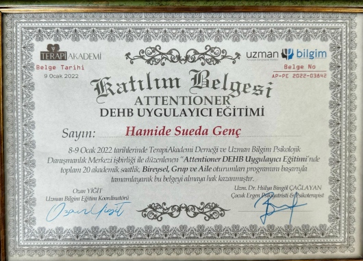 Henüz çok uzun bir zaman geçmemesine rağmen terapilerimizin bana çok güzel etkileri oldu zaman ilerledikçe Sueda Hocamızla beraber daha bir çok şeyi halledebileceğimize inanıyorum
