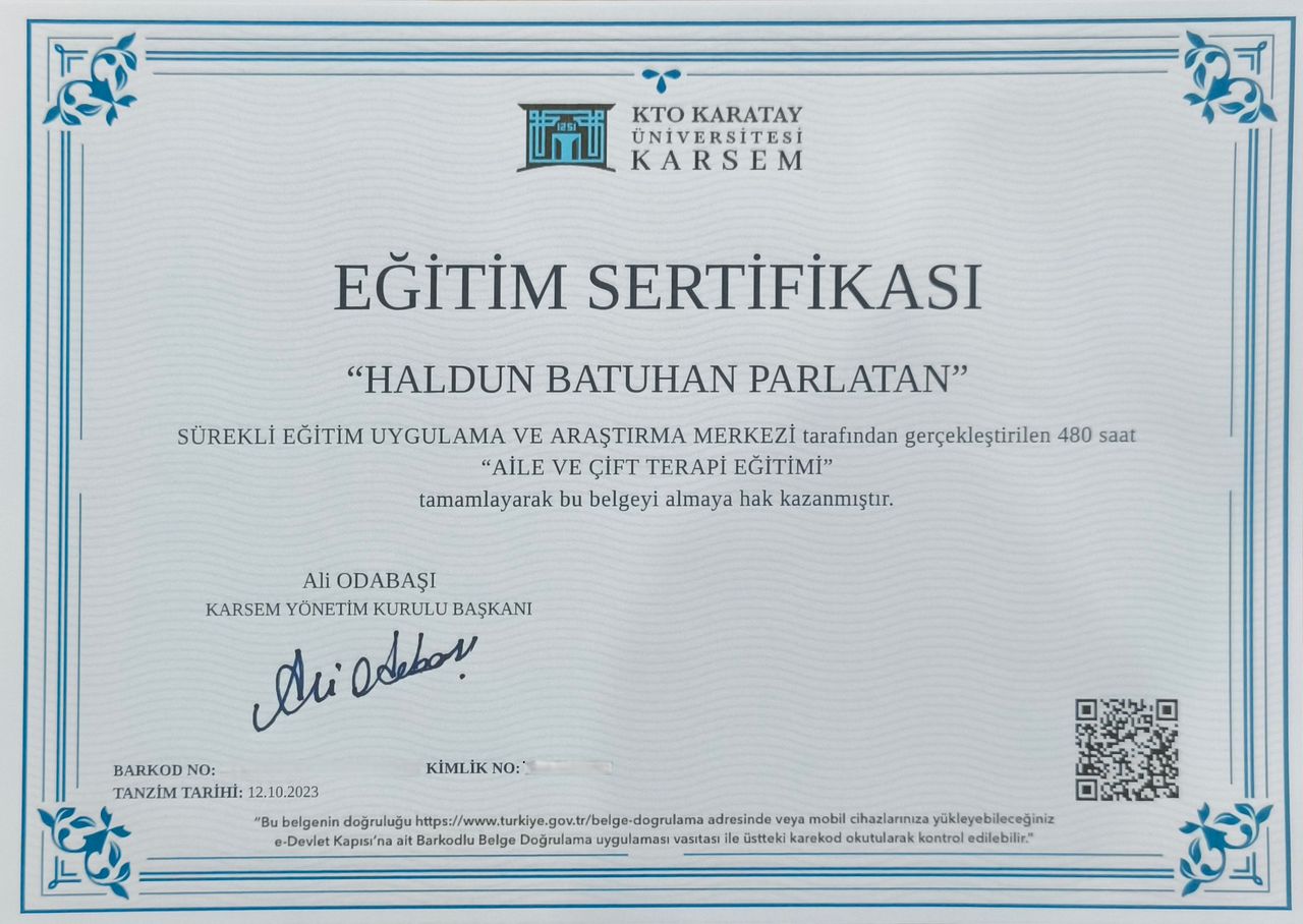 • Kl.Psk. Haldun Batuhan Parlatan • Aile Danışmanlığı •