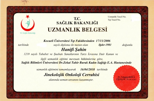 Yumurtalık kanseri tanısı ile karşılaştım birçok doktora gittikten sonra Tavsiye üzerine doktor Hanifi Şahin hocamızla tanıştık Her gittiğim doktordan duyduğum karamsar tablo 3 evre kanser acil ameliyat önerisi oldukça yıpratmıştı Hanife hocamın bu alanda en iyi Cerrah oluşu ilk muayene sırasında diğer doktorların aksine Durumun bu kadar karamsar olmadığını söyleyerek hastalıkla mücadelemi ve motivasyonumu tekrardan kazanmıştım ameliyat sonrasında doktorumuzun tecrübesiyle kitlelerin kanser olmadığı müjdesini aldık gelen patoloji sonuçları da bunu destekledi Hanife'yi hocam gibi tecrübeli yetenekli bir Hoca ile karşılaştığım için günlerce Allah'a şükür ettim Allah sizler gibi hastalara şifa dağıtan hocaları başımızdan eksik etmesin yolunuzu açık etsin inşallah