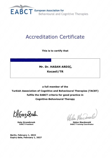 Hasan Ardıç isimli uzmanın ana uzmanlık alanları nelerdir?Hasan Ardıç, Çocuk ve Ergen Psikiyatrisi. Size Hasan Ardıç tarafından sunulan hizmetlerden bazılarını gösteriyoruz: Randevu, Normal Randevu, Bilişsel Davranışçı Terapi, Aile Terapisi, Psikoterapi, Çocuk Gelişim Testi, Mmpi- Minnesota Çok Yönlü Kişilik Envanteri, Standardize Mini Mental Test, Cümle Tamamlama Testi, Bağımlılık Danışmanlığı.