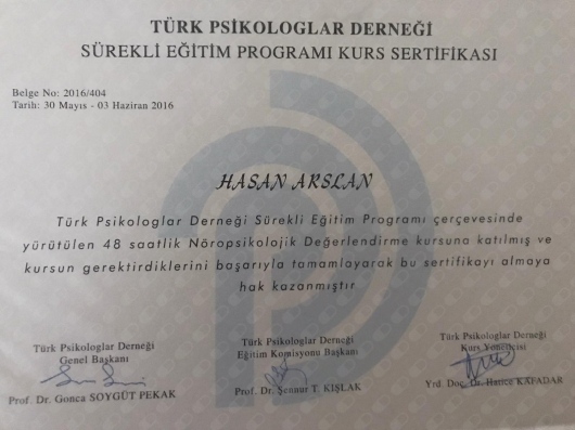 • Uzman Klinik Psikolog Hasan Arslan Nöropsikolojik Değerlendirme  •