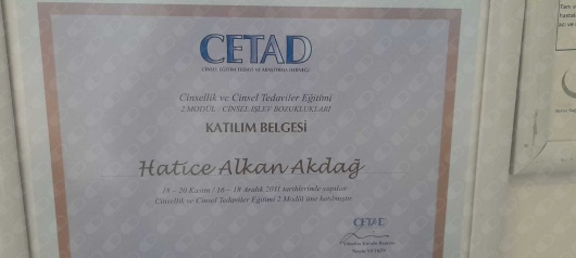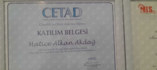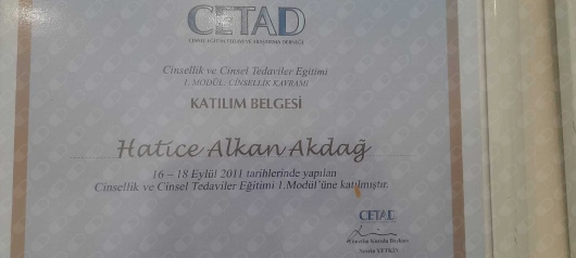 -Cinsellik ve Cinsel Tedaviler Eğitimi, 144 Saat teorik, 96 saat süpervizyon (CETAD, 2011-2013)