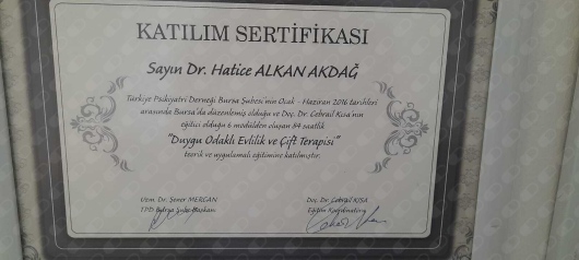 -Duygu Odaklı Evlilik ve Çift Terapisi, Teorik ve Uygulamalı Eğitimi (2016, 84 saat) Doç. Dr. Cebrail Kısa
