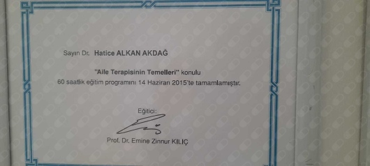 -Aile Terapisinin Temelleri (2014-Haziran 2015, 60 saat) Prof. Dr. Emine Zinnur Kılıç