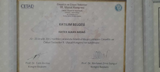 rehberliğinde Cinsel Terapi teorik ve süpervizyon eğitimleri aldım. Tezimi