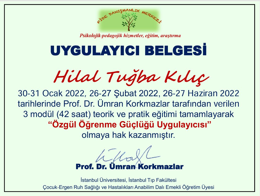Uzm. Dr. Hilal Tuğba KILIÇ Özel Muayenehanesi