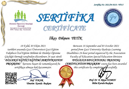 Yüksek lisansımı Eskişehir Anadolu Üniversitesi Dil ve Konuşma Terapistliği Bölümünde (DİLKOM) tamamladım.