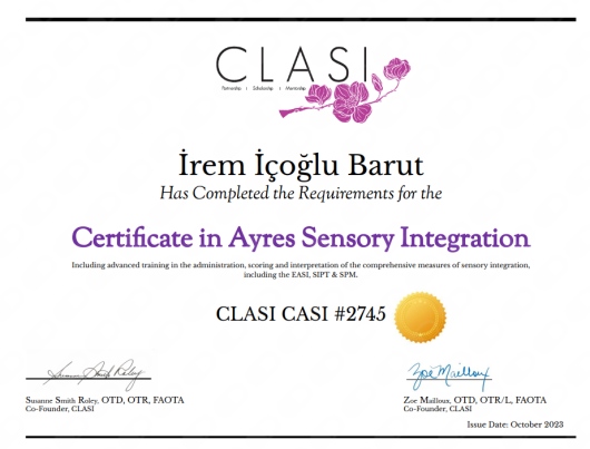 Oğlumla başladığımız duyu bütünleme sürecinde İrem hanımla uzun ve güzelce bir yol katettik. Gönül rahatlığıyla; oğlumun “çok sevdiği İrem ablası” olabilen ve işini severek yaptığı her halinden belli olan İrem hanımı tavsiye ederim. İşine olan saygısı, bize ve çocuğumuza olan yaklaşımı, her aşamada dinleyen, bilgilendiren ve kendini geliştiren bir ergoterapist olması sebebiyle iyi ki yollarımız kesişmiş diyorum. Oğlumun en bayılarak gittiği yerde bir de bize böyle güzel süreçler ve sonuçlar yaşattığı için kendisi iyi ki var.