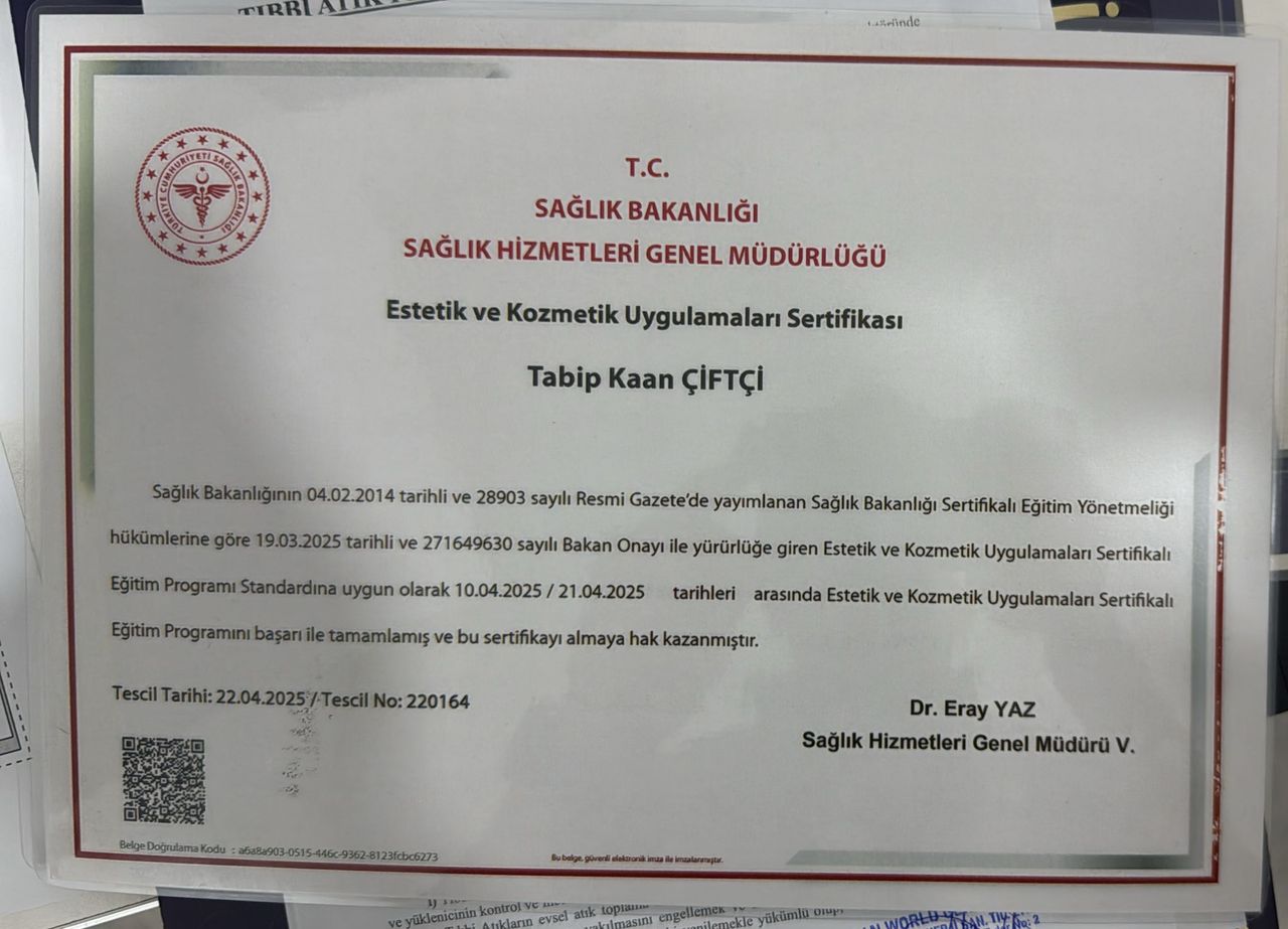 Kaan Çiftçi isimli uzmanın ana uzmanlık alanları nelerdir?Kaan Çiftçi, Sertifikalı Medikal Estetik, Mezoterapi. Size Kaan Çiftçi tarafından sunulan hizmetlerden bazılarını gösteriyoruz: Randevu, Medikal Estetik Uygulamalar, Botoks, Saç Mezoterapi Ve Saç PRP, Mezoterapi, PRP, Dudak Dolgusu, Bölgesel Zayıflama, Dolgu, Pratisyen Randevusu.