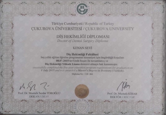 Kenan Sevi hocamıza diş teli tedavisi yaptırdım. Mersin’in en donanımlı ve alanında çok başarılı sayılı diş hekimlerinden biri diyebilirim.