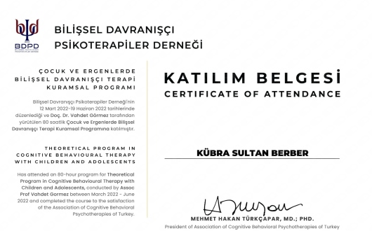 • Çocuk ve Ergenlerde Bilişsel Davranışçı Terapi Kuramsal Programı- Hakan Türkçapar, MD.;PHD-Bilişsel Davranışçı Psikoterapiler Derneği