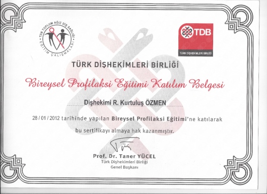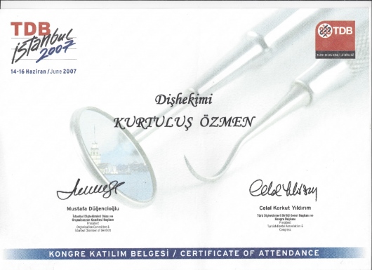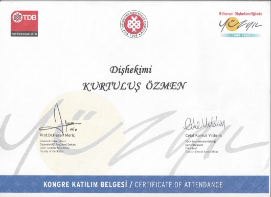Kurtuluş Özmen isimli uzmanın ana uzmanlık alanları nelerdir?Kurtuluş Özmen, Diş Hekimi. Size Kurtuluş Özmen tarafından sunulan hizmetlerden bazılarını gösteriyoruz: Apse Insizyonu Ve Drenajı, İmplant, Lamina Uygulamaları, Cerrahi İmplant, İmplant Uygulamaları ve Farklı Üst Yapı Tercihleri, Kron-köprü, Köprü Uygulaması, 20'lik Diş Çekimi, Ağız Bakımı(Diş Ve Diş Eti Bakımı).