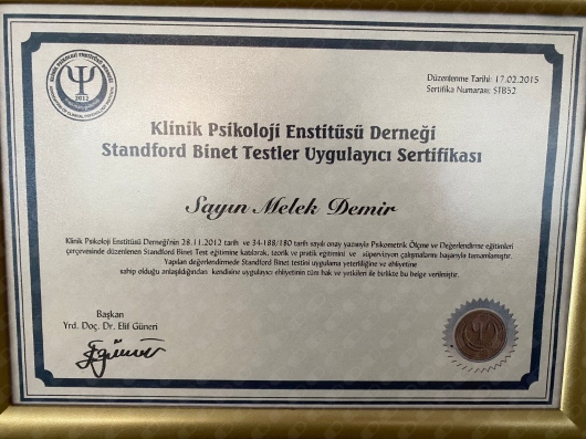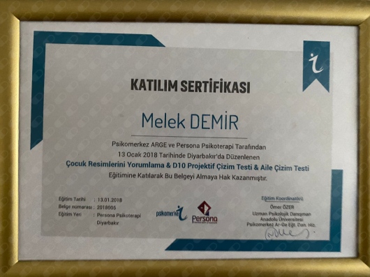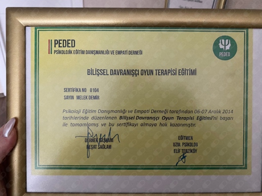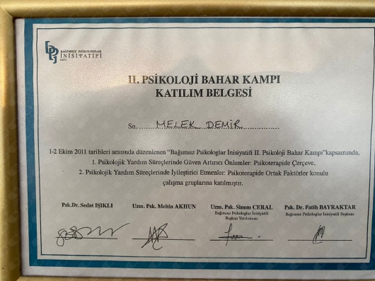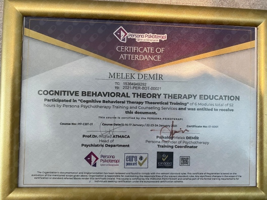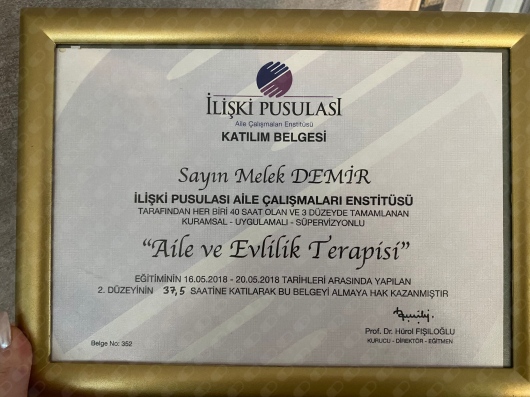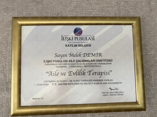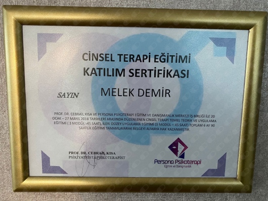 Kuruma ilk gittiğimde duvarda asılı olan diplomalar sertifikalar çok dikkatimi çekmişti ve zaman geçtikçe Melek hocamda çok daha fazlasını gördüm. Uzun zamandır terapi alıyorum.Herşeyden önce bana verdiği güvenle ona tüm sorunlarımı rahatlıkla anlatabilmemi sağladı ve beni derinlemesine dinleyip yaptığı analizlerle, yaşadığım sorunlara daha geniş açıdan bakabilmeyi ve bu sorunlarla nasıl baş edebileceğimi öğrendim.Ayrıca mesleği dışında da danışanlarına karşı çok anlayışlı,kibar ve güler yüzlü. İyi ki Melek hocamla çalışmışım.