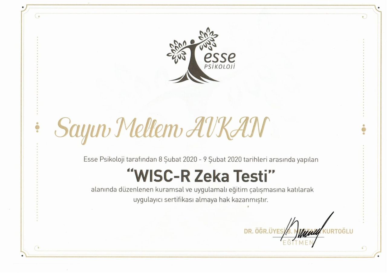 Meltem Avkan isimli uzmanın ana uzmanlık alanları nelerdir?Meltem Avkan, Psikoloji. Size Meltem Avkan tarafından sunulan hizmetlerden bazılarını gösteriyoruz: Agte- Ankara Gelişim Tarama Envanteri, Bender Gestalt Motor Algı Testi, Benton Görsel Bellek Testi, Çocuk Gelişim Testi, Gessell Gelişim Testi, Good Enough Zeka Testi, Psikoterapi, Wisc-R-Çocuklar İçin Zeka Testi, Bilişsel Davranışçı Terapi, Çift Terapisi.